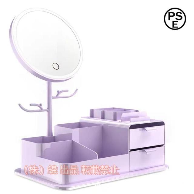 化粧品収納ボックス 鏡付き LED ライトミラー メイクボックス 卓上鏡台 ミニドレッサー 引き出し 化粧鏡付き 株式会社錦 無段階調光 USB充電 角度調整可能