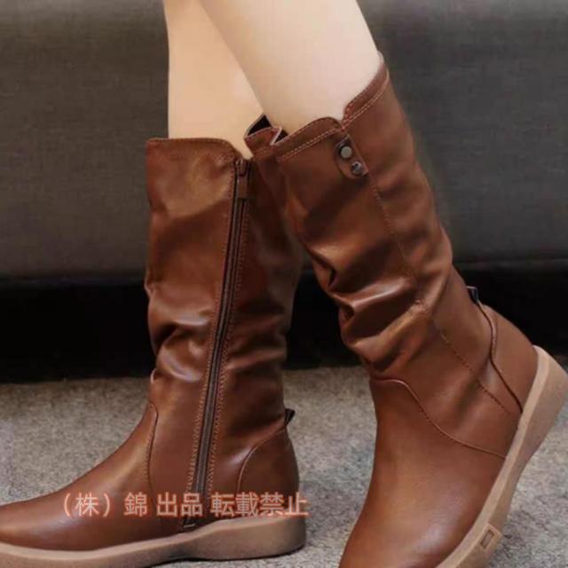ミドルブーツ ストレッチロングブーツ 靴 大きいサイズ レディースミドル ブーツラウンドトゥ 錦本革調 歩きやすい 痛くない ブーツ 外反母趾 くしゅくしゅ