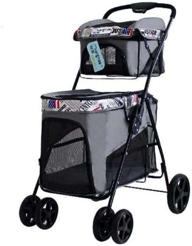 ペットカート 犬用 カート 犬 ベビーカー,耐荷重20Kg四輪折りたたみ ペットカート,株式会社錦 上下2段独立カゴタイプ犬用カート 中小型犬用ベビーカー