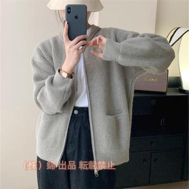 レディース ニットジャケット ジップアップ セーター 厚手 ショート丈 ジャケット ダブルジッパー ニット株式会社錦 リブ編み 暖かい コート カーディガ
