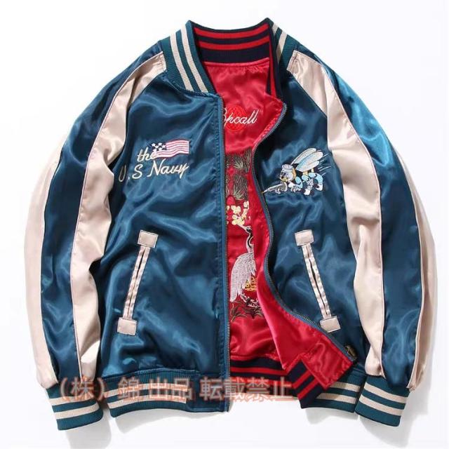 スカジャン男女兼用横須賀メンズ刺繍ブルゾン鶴サテン光沢リバーシブル二面両面フライトジャケットレディースアウター春秋長袖バイク