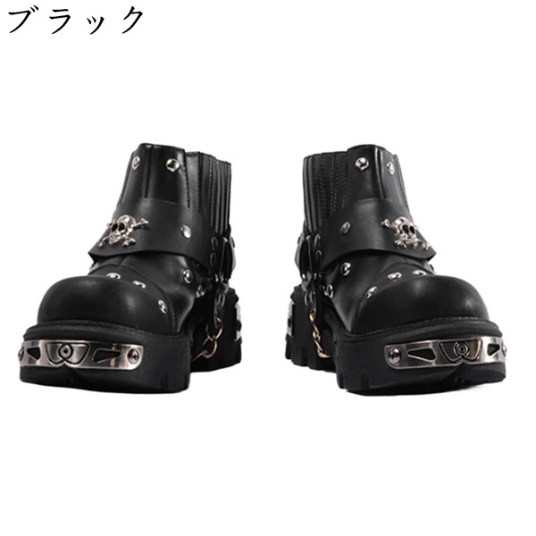 メンズ レザー ショートブーツ 大きいサイズ パンク風 厚底 髑髏 ロック ワークブーツ 株式会社錦牛革 春夏秋冬 ユニセックス サブカル ベルト