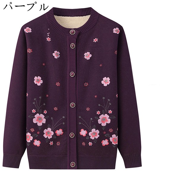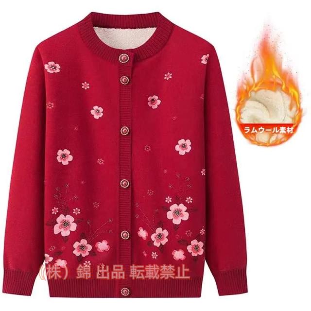高齢者 レディース 花柄カーディガン おばあちゃんのコート 前開きボタン ニットセーター株式会社錦裏起毛 保温性 暖かい 婦人 ゆったり オシャレ