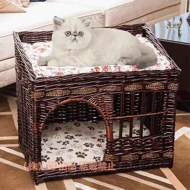 ■サイズ(約):S:48×35×42cmM:54×36×42cmL:56×38×47cm■材質:【本体】柳■生産国:中国キャットハウス[猫ちぐら ねこ ハウス おうち 2段 多頭飼い ベッド 柳 天然素材 手作り ドーム おしゃれ ]※竹シーツとマットが付きません