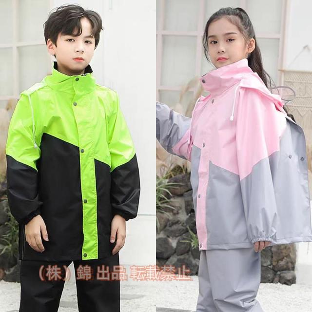 レインコート キッズ 子供 ランドセル対応 長袖 上下セット レインウェア 2点セット ズボン レインパンツ 小学生 中学生 防水 雨具 カッパ 合羽