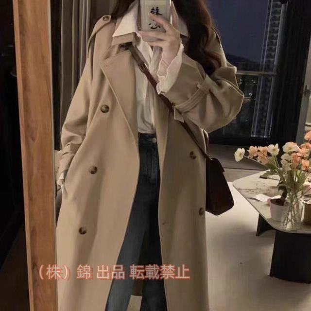 レディースロングコートトレンチコートスプリングコートゆったり秋コートトレンチコートアウターきれいめ無地長袖通勤株式会社錦春服30代40代ロング