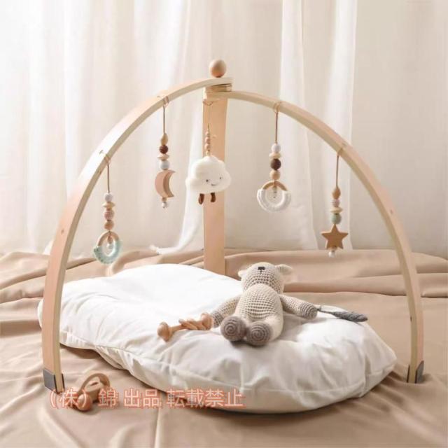 ベビージム 木製 北欧 安心 ナチュラル ベビーカー用おもちゃ付き株式会社錦 知育玩具 0歳 室内 ベッドぶら下げ プレイジム ベビー おしゃれ 赤ちゃん