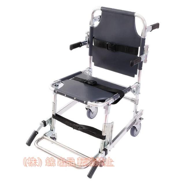 4つの車輪が付いているので、一人でも簡単に運搬が可能です。2つのベルトが付属しているため、搬送中の患者の安全を確保することができます。