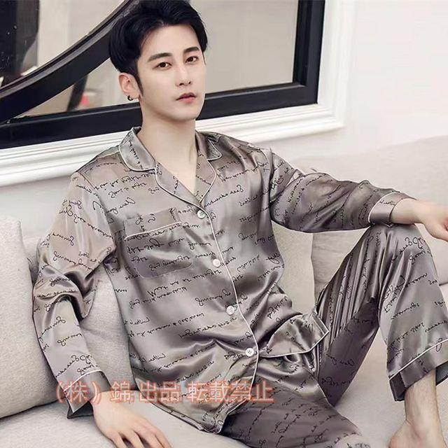 パジャマメンズ春夏秋冬2点セットセットアップルームウェア半袖長袖錦長ズボンアイスシルクパジャマ前開き男性用大きいサイズナイトガウン部屋着