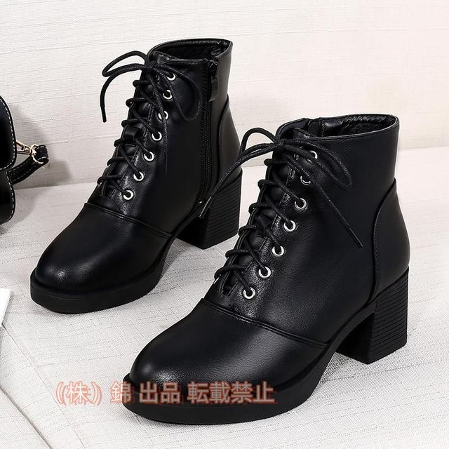 ブーツ レディース 袴ブーツ 厚底アンクルブーツ 靴 高ヒール シューズ 紐 厚底 錦 本革調 ブロックヒール 厚底ブーツ 太ヒー ブーツ 防水 仕事レジャー 休暇