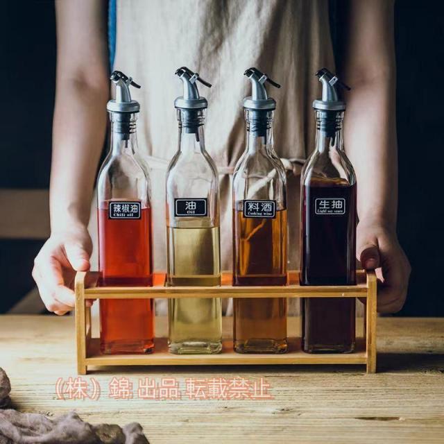 セット:オイルボトル×4本(容量:500ml)+木製ラック×1本