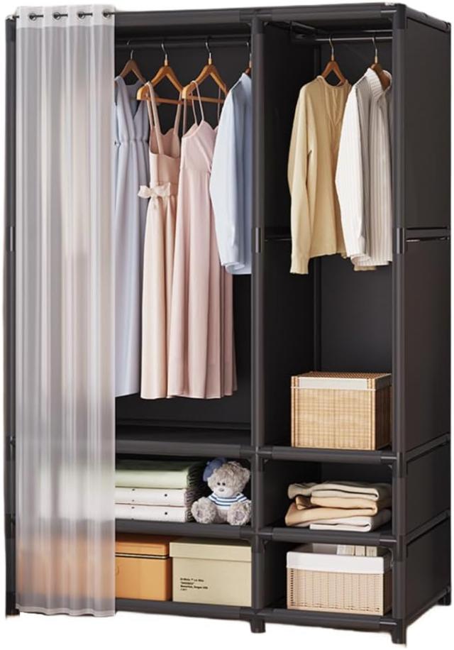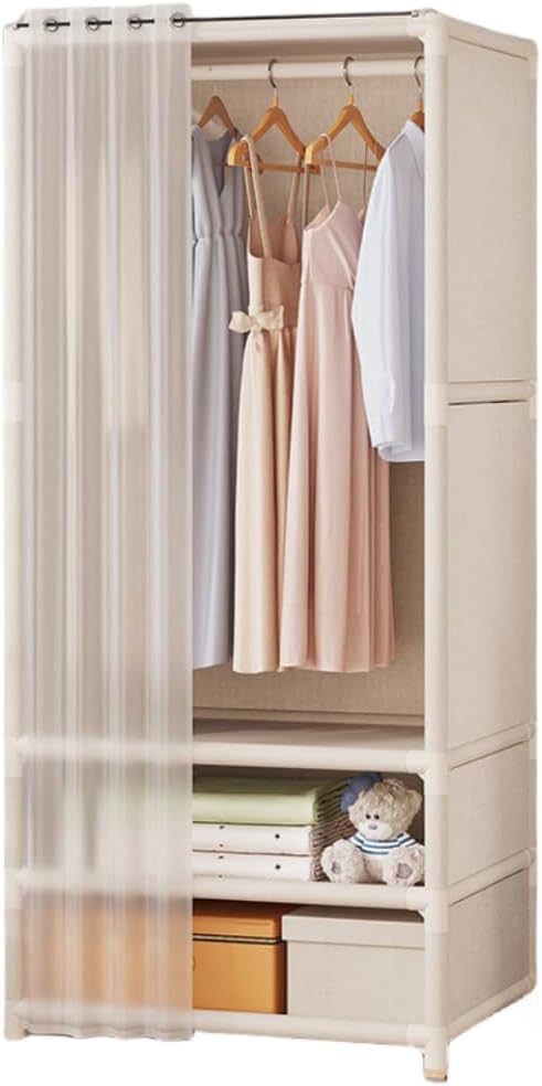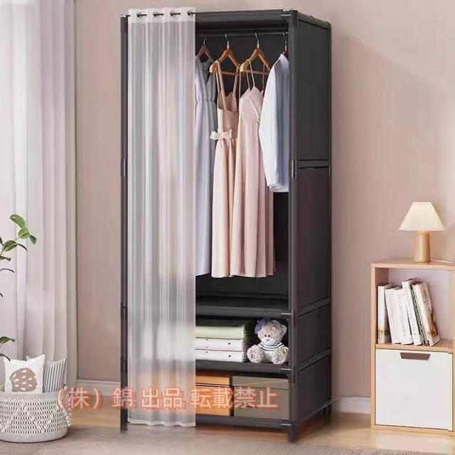 ワードローブクローゼット洋服収納大容量カバー付き不織布防水防塵防汚簡単組み立て式株式会社錦ドアカーテン付き衣類収納ラック省スペースハンガーラック洋