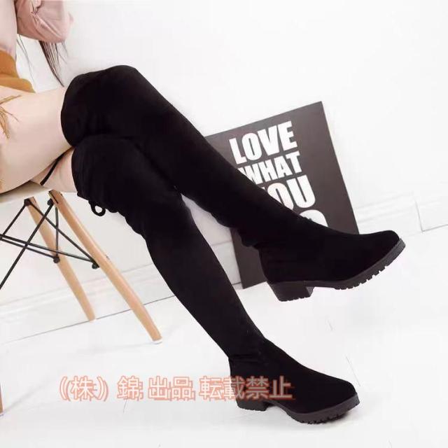 ロングブーツレディースローヒール太ヒールジョッキーブーツ履き口ニーハイブーツブーツ黒裏起毛大きい美脚女の子錦おしゃれ歩きやすいブーツ靴