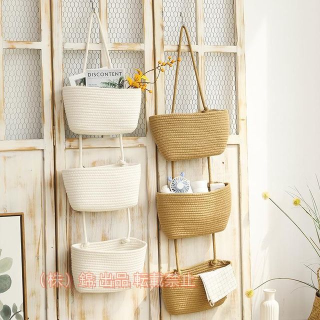 壁掛けバスケットおもちゃ収納バスケットかごハンギングバスケットかごバッグカラー編みバスケット3層ドアハンギングバスケット錦ドアウォールラック装飾