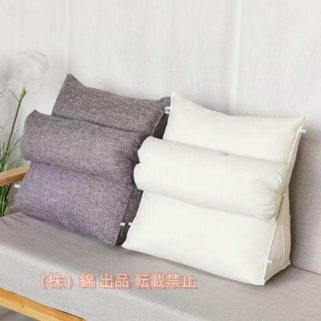 三角枕 三角クッション テレビ枕 腰掛クッション 背もたれ 筒型枕付き株式会社錦 側面ポケット付き (グレー)