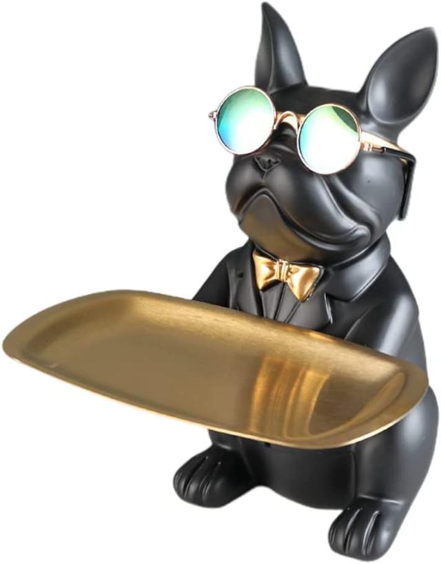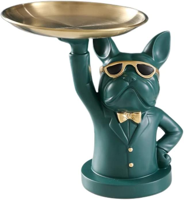 シンプルなユニークな形状、高輝度と活発な色、繊細な職人の技。クールフレンチブルドッグ置物収納トレイ家の装飾アート彫刻置物。