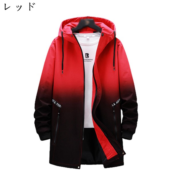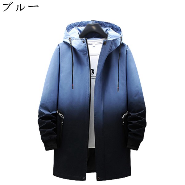 ベンチコート 春秋 ジャケット ロング丈 メンズ スプリングコート グラデーション バイカラー カジュアル 株式会社錦フード付き メンズコート 薄手