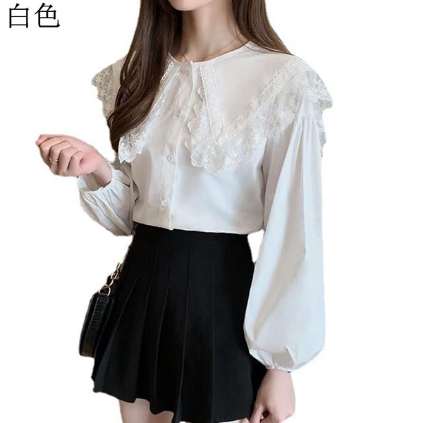 ブラウス 長そで ビッグ襟シャツ プルオーバー レース ボリューム レディース 丸襟 フリル衿 ゆったり 株式会社錦パフスリーブ 韓国 かわいい 姫