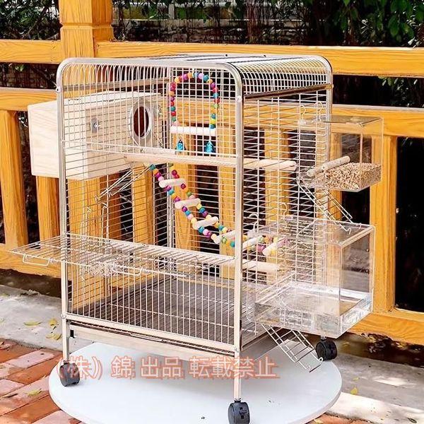 40*40*65CM小さなオウムステンレス鋼鳥ケージ鳥小屋鳥かごバードケージ鳥籠フードカップ錦木製スタンドトレイキャスターはしごブランコ大型飼育箱