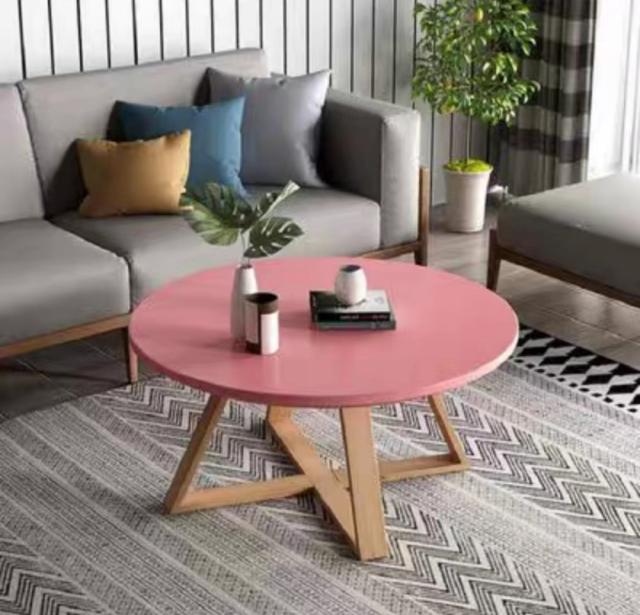 ローテーブル 丸 ホワイトのリビングルーム用ラウンドコーヒーテーブル、株式会社錦 厚みのある木製の脚を備えたモダンでミニマ