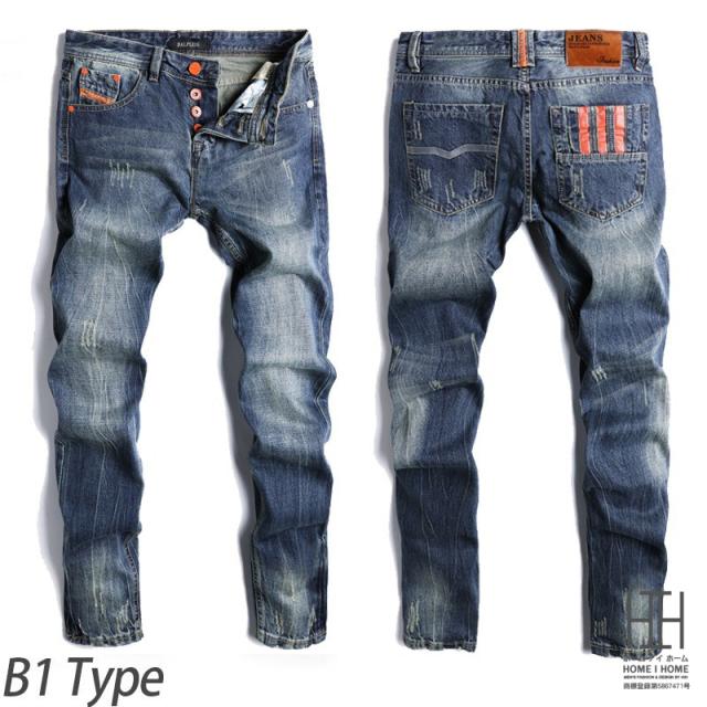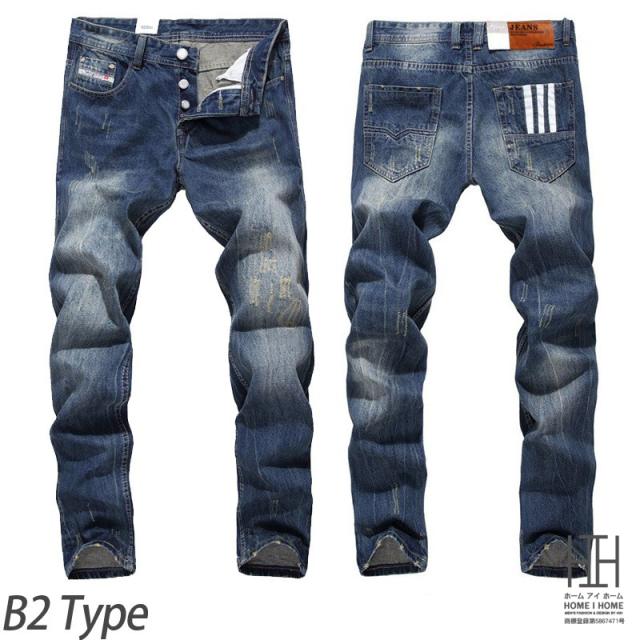 デニムパンツ メンズ Gパン ジーンズ ストレート ウォッシュ ダメージ ユーズド