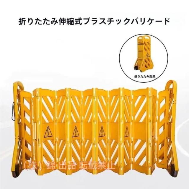 伸縮自在のバリケードゲート 移動式安全バリアゲート 開閉式トラフィックバリケード ガードレールネット 株式会社錦 キャスター付き開閉式工事用防護柵