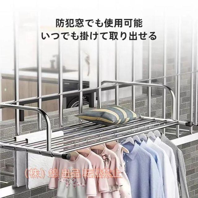 - 多機能:物干し以外にも、キッチンやバスルームでのタオル掛け、植物やインテリアの収納ラックとしてもお使いいただけます。- 工具なしで簡単に使える便利なアイテムで、家の縁の厚みに合わせて調整するだけ。ネジや釘は必要ありません。- 折りたたみも簡単:使わないときは折りたたんでおけるので、収納スペースを気にする必要がありません。コンパクトに折りたたむことができ、女性でも簡単に持ち運びができます。ベランダ内の空いたスペースに干すこともできます。- MADE OF STAINLESS STEEL:フックは剛性が高く、衝撃や曲げ疲れ、引っ張りに強いです。また、壁を傷つける心配もありません。- 屋内外兼用:雨の日や花粉の季節など、屋外に洗濯物を干せないときは、室内に設置して洗濯物を干すことができる