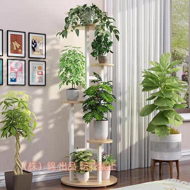 【商品詳細】サイズ :奥行 40cm 幅 40cm 高さ 100cm 5階高低花棚、5つの植木鉢ホルダー、1.7cm厚の棚板、軽量で可動。