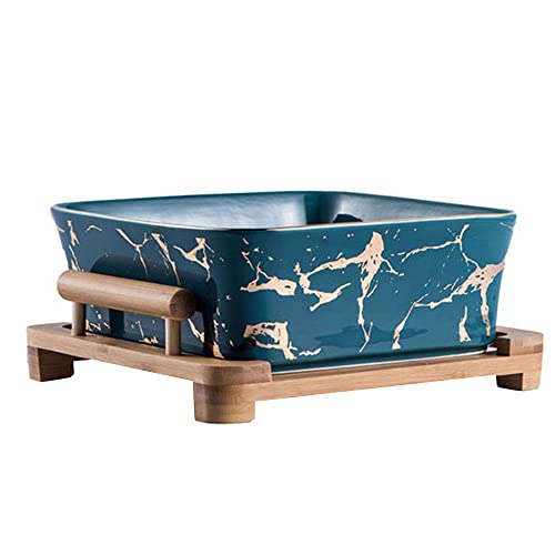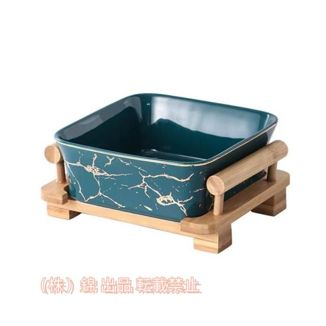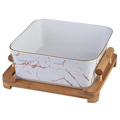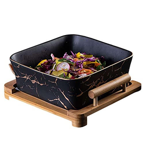 木製ベース付き北欧セラミックフルーツプレート 磁器フルーツプレート正方形ミキシングボウルデザートスナックサラダライス- 3.5*23.5*8cm