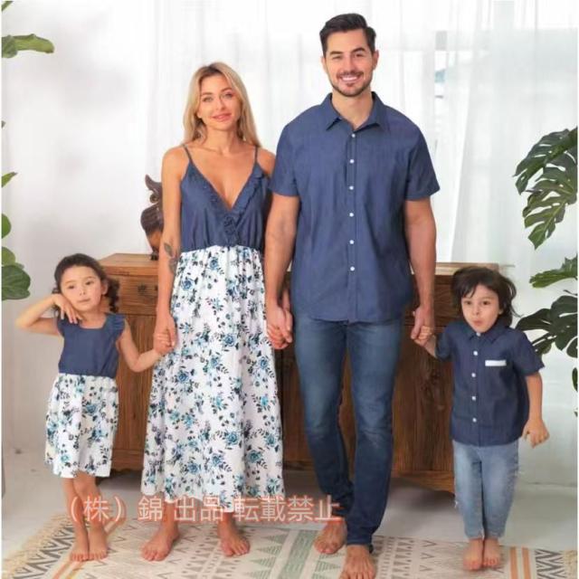 親子コーデベビーワンピース親子お揃いリゾート株式会社錦親子ペアルックレディース花柄ワンピース女の子キッズ女の子子供用ママ子供服ワンピース海家族