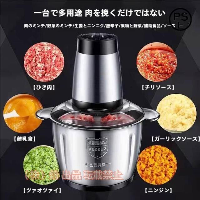 フードプロセッサー 電動 一台多役 2L/3L 大容量 挽き器 みじん切り器 大根おろし器 電動ミキサー 4枚カッター付き 砕可能錦 水洗い可能 掃除簡単 プレゼント