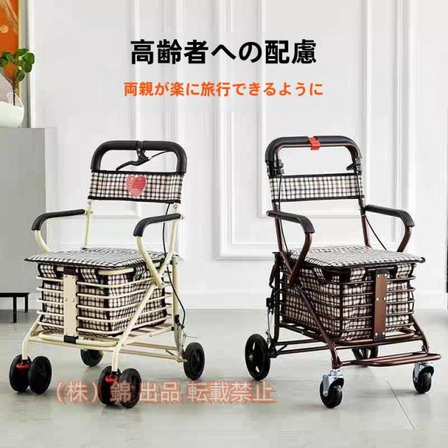 手押し車 シルバーカー 折りたたみ 手押し車 歩行補助 補助具 ブレーキ付き 収納 買い物 ショッピングカート 座れる 高齢者 座面付き 錦 杖代わりカート