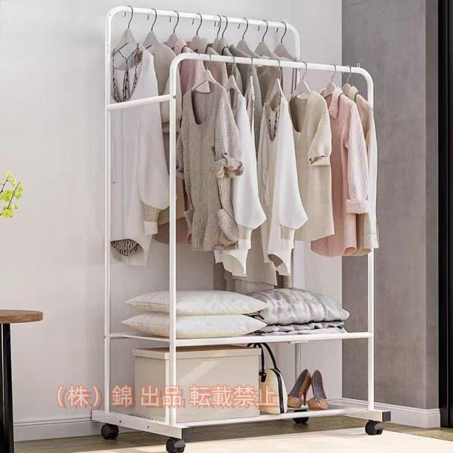 ハンガーラック 2段 パイプハンガー ダブル 洋服ラック キャスター付 白 大容量 服掛け スタンド おしゃれ パイプハンガー ラック株式会社錦 防サビ加工 棚