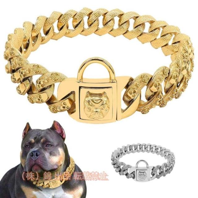 犬の首輪 ゴールドトーンの犬の首輪、32 mm金属スリップチェーン-クール+大型犬に最適:ピットブル錦ドーベルマン、ブルドッグ、ロットワイラーなど