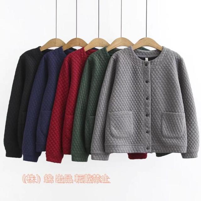 ショート 長袖 キルティングジャケット ノーカラー 秋 上着 キルティングコート アウター レディース ボタン留め シンプル 株式会社錦軽量 大人可愛い 体型
