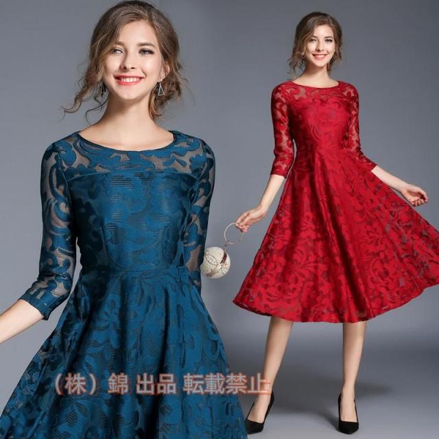 レディースファッション 50代 40代 30代 20代 ワンピース パーティードレス フォーマルドレス ドレス 花柄レース シースルー シアー フレアスカート Aラインスカート 膝下 ひざ下 膝丈 袖あり 半袖 半そで ハーフスリーブ 長袖 長そで ラウンドカラー クルーネック 丸首 大人 オトナ おしゃれ オシャレ きれいめ キレイメ 上品 フォーマル ヴィンテージ レトロ 春 夏 秋 冬 オールシーズン