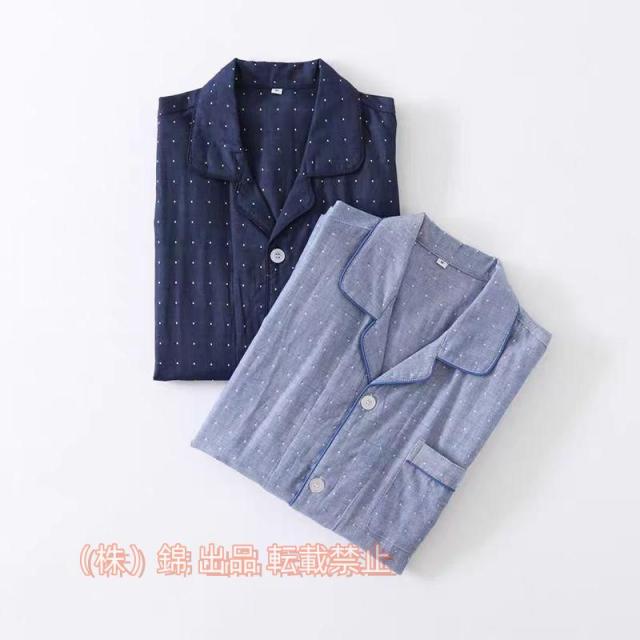 ダブルガーゼパジャマメンズ前開きパジャマメンズ長袖冬秋春綿100%メンズ前開きパジャマ株式会社錦冬用ガーゼパジャマメンズ前開き長袖ルームウェア