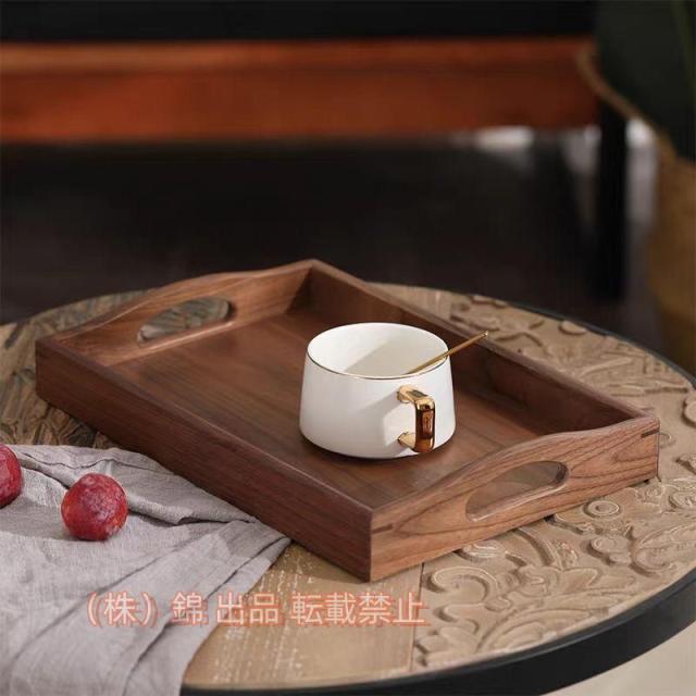 トレイトレー黒クルミの木木製取っ手付天然木製お盆食事トレー長方形ランチトレイカフェトレイ茶具フレア和風ブラウンアクセサリートレイ