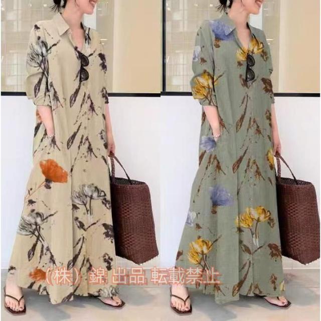 ワンピース マキシワンピース レディース 40代 50代 おしゃれ シャツワンピース ゆったり ロング丈 リネン 株式会社錦体型カバー 大きいサイズ