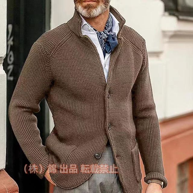 カーディガン 秋冬 メンズ ス 長袖 40代 50代 ビジネス ニットジャケット ニット セーター 無地 株式会社錦スタンドカラー