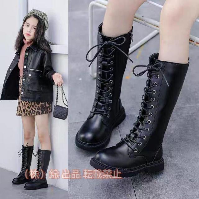 キッズブーツ編み上げ袴ブーツ子供ブーツレースアップブーツロングブーツ女の子ブーツ子供靴長靴ローヒールキッズ株式会社錦ジュニア防寒裏起毛厚底