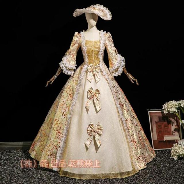 貴婦人貴族風ステージ衣装中世貴族風お姫様ドレスヨーロッパ貴族服ロングドレス新劇錦仮装パーティー学園祭文化祭イベント演劇オペラ声楽ベージュ金