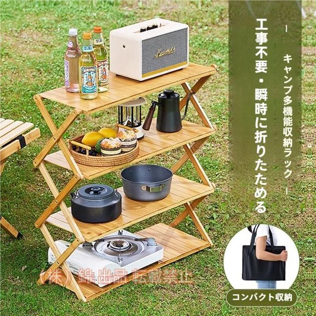 ■散らかりがちキャンプ用品の小物を段ごとに仕分けてスッキリ収納!■竹製なのでアウトドアの自然な雰囲気に馴染みます■女性の方でも簡単に組み立てできます■使用しないときは折り畳んでコンパクトに収納できます■肩掛けできる収納バックで持ち運び楽々?■お部屋のインテリアとしても使えますおすすめ用途 アウトドアラック ディスプレイラック ガーデニング キャンプ台 飾り台 飾り棚 収納棚 キャンプ レジャー バーベキュー ソロキャンプ 車中泊 キッチン リビング 学習部屋 子供部屋 脱衣所 本棚 玄関 軒先【商品内容】:折りたたみ式ラック(2段/3段/4段/5段)【カラー】ベージュ(ナチュラル)、茶色(ブラック)【サイズ(約)】:写真をご参照ください【素材】:竹【重量】サイズ別、詳しい情報が知りたい場合、当店にお問い合わせください (三層50cm ベージュ)タイプ1 :2.5KG(本体) (四層50cm ベージュ)タイプ1:3.5KG(本体)【商品内容】ラック+収納袋(タイプA) ラック+収納袋+フック×2点(タイプB)