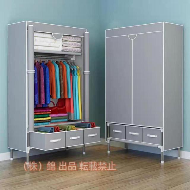 ワードローブ 大容量 カバー付き クローゼット ハンガーラック 3つの引き出し 整理タンス 衣類収納 組み立て式 株式会社錦 工具不要 (グレー)
