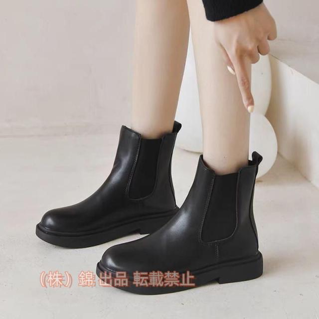 ブーツレディースショートブーツショートサイドゴア厚底ストレッチブーツラウンドトゥブラック黒裏起毛ローヒール株式会社錦サイドゴアブーツミドルブーツ