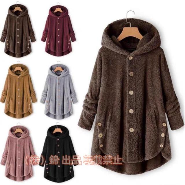 パーカージャケット レディース 無地 ボア フリースコート 秋冬物 もこもこ アウター かわいい株式会社錦 大きいサイズ フード付き ミドル丈コート カジュアル