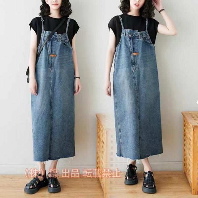 デニム ジャンパースカート レディース キャミワンピ 夏 サロペットワンピース お洒落 体型カバー 春秋 デニムサロペット Aライン 株式会社錦 アシンメトリー