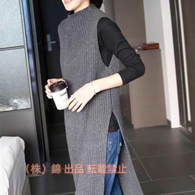 ニットワンピースレディース40代春秋冬ワンピースロングベストミモレ丈株式会社錦ノースリーブ着痩せゆったり無地日常着ママコーデ着回し30代50代