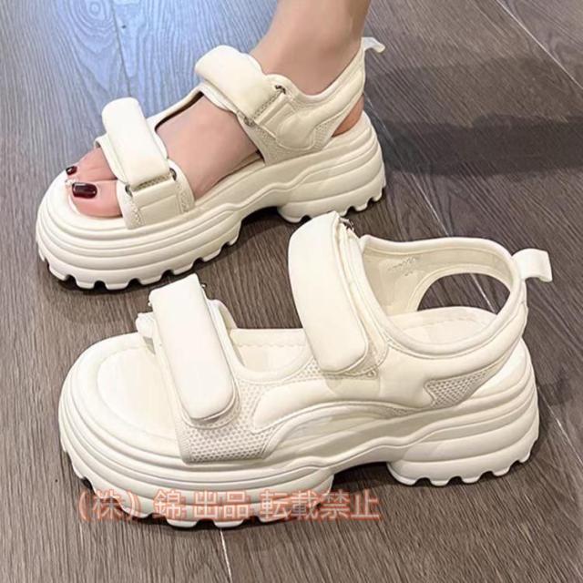 スポーツサンダル 厚底 レディース韓国風 厚底 スポーツサンダル マジックテープ ウェッジソール 錦 レディース オープントゥ 通気性 軽量 滑り止め おしゃれ
