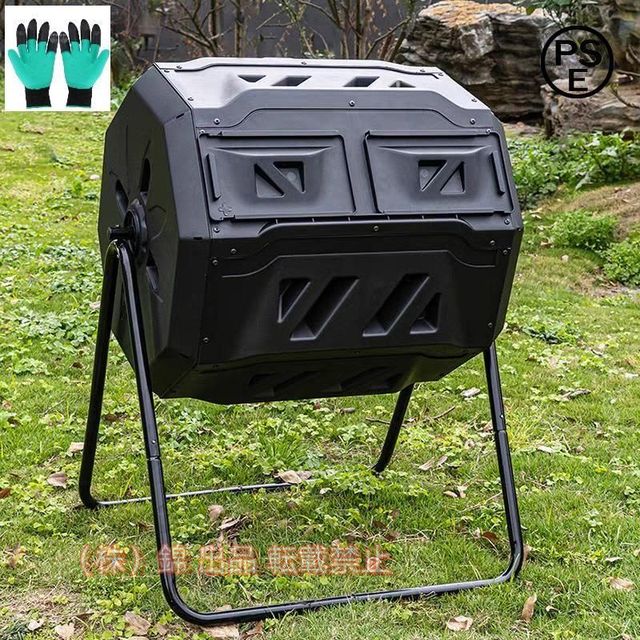 コンポスター 回転式 生ごみ コンポスト ダブル 大型160L コンパクト 生ごみ 生ゴミ/落ち葉処理 堆肥 有機肥料株式会社錦 爪付き作業手袋 園芸用 家庭用